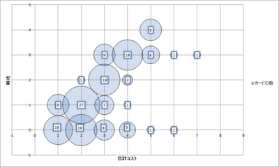 (図「全カードの合計コストの分布」、「カードを2枚使用した時のコストの分布」、「合計コストと時代の関係」を参照)